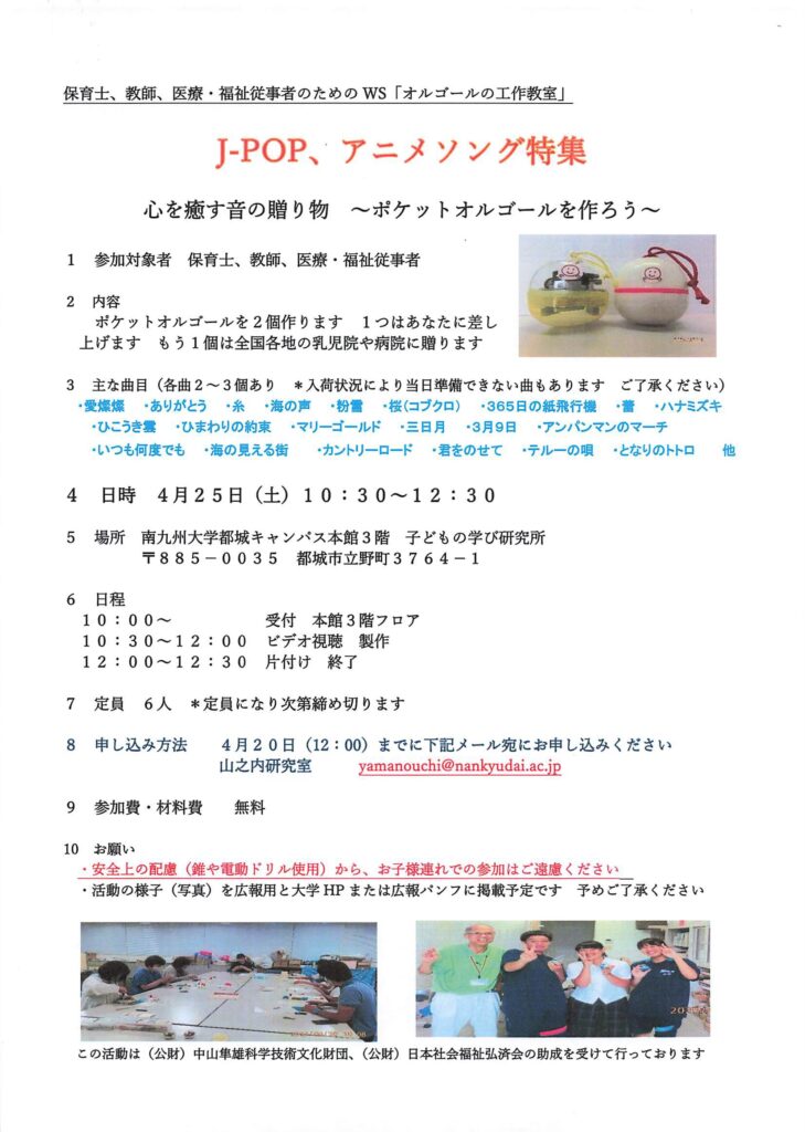 保育・教育・医療・福祉従事者のための「ポケットオルゴール」工作教室