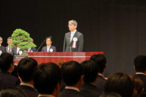 続く学長式辞では、中瀬昌之学長より、新入生へのあたたかいエールが贈られました。