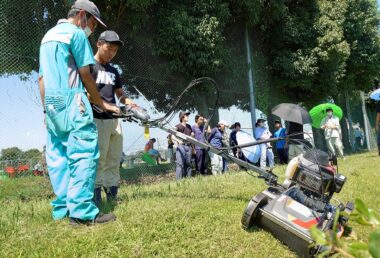8月18日(火)、造園ガーデニング実習Ⅰにおいて、草地管理機特別実習(都城キャンパスグラウンドにて)が行われ、造園ガーデニング実習Ⅰの受講者38名、教職員6名の44名が参加しました。