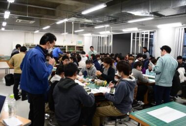 造園学分野の授業「造園学概論」の特別企画として、宮崎県造園緑地協会青年部と日本造園建設業協会宮崎県支部青年部の皆様方総勢8名にお越しいただき、学生たち約80名とワークショップを行いました。