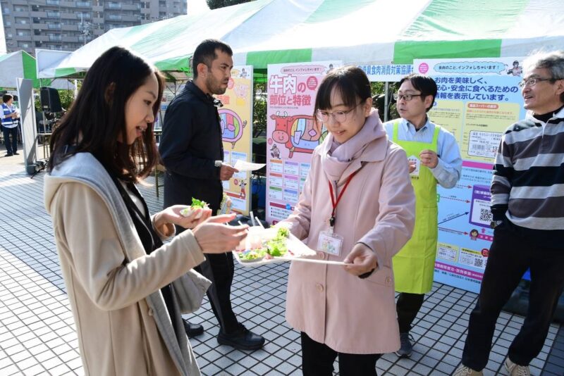 環境園芸学科では、本年度より『農業女子支援プロジェクト』を実施しております。これは、女性農業者が日々の生活や仕事、自然との関わりの中で培った知恵を様々な企業の技術・ノウハウ・アイデアなどと結びつけ、新たな商品やサービス、情報を創造し、社会に広く発信していくために実施している国のプロジェクトに賛同し、当学科でも農業に携わる女性、これから携わるかもしれない女性を広く集め、応援して行こうというプロジェクトです。 その一環として、11月17日(日)に宮崎市JAアズムを会場として開催された「Karada Good Miyazakiフェスタ2019」で「Hinata・あぐりんぬ」が行った農産物販売の補助をしました。「Hinata・あぐりんぬ」は、平成28年7月に設立された女性農業者組織で、女性農業者の視点で農業の魅力を発信するとともに、資質向上及びネットワーク強化に向けて、学修や交流等の活動を行っています。