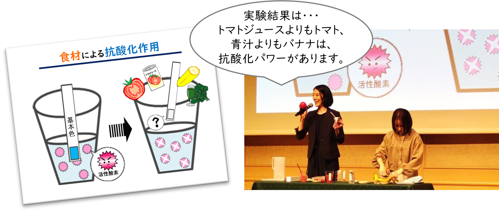 このことから日常の食材を使用して抗酸化作用の実験を行いました。