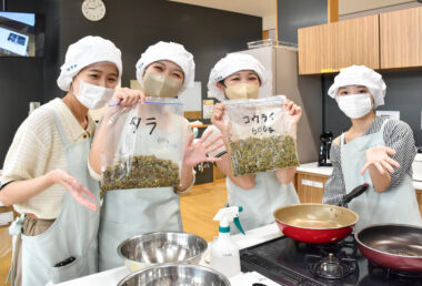 10月11日、都城市のMallmallで「第17回都城市環境まつり」が開催され、本学管理栄養学科・棚町祥子講師ゼミの学生と環境園芸学科・中野光議講師ゼミの学生が「コウライキッチン~オヤニラミの秘密レシピ~」というブースを出展しました。