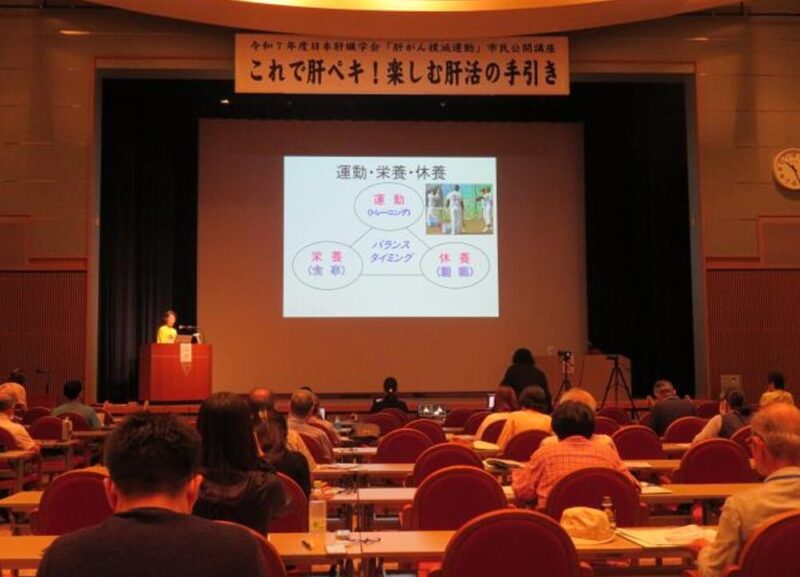 7月27日、令和7年度日本肝臓学会「肝がん撲滅運動」市民公開講座「これで肝ペキ!楽しむ肝活の手引き」が鹿児島県医師会館で行われ、本学管理栄養学科の竹元明子准教授が講演を行いました。