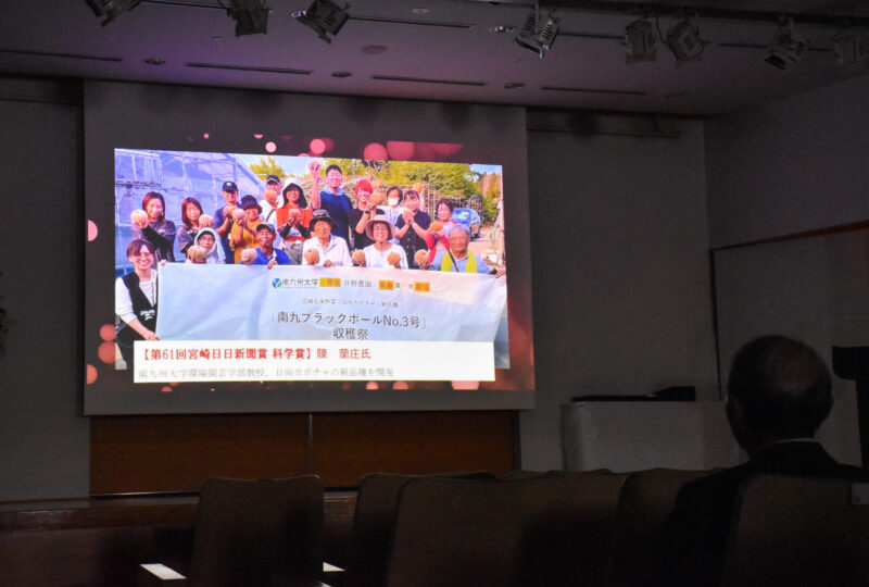 昨年度からは、日向カボチャの新品種「南九ブラックボールNo.3号」の栽培が県内各地で始まっていることなど、地域ぐるみで農業振興、地域活性化に取り組んでいることなどが高く評価されました。