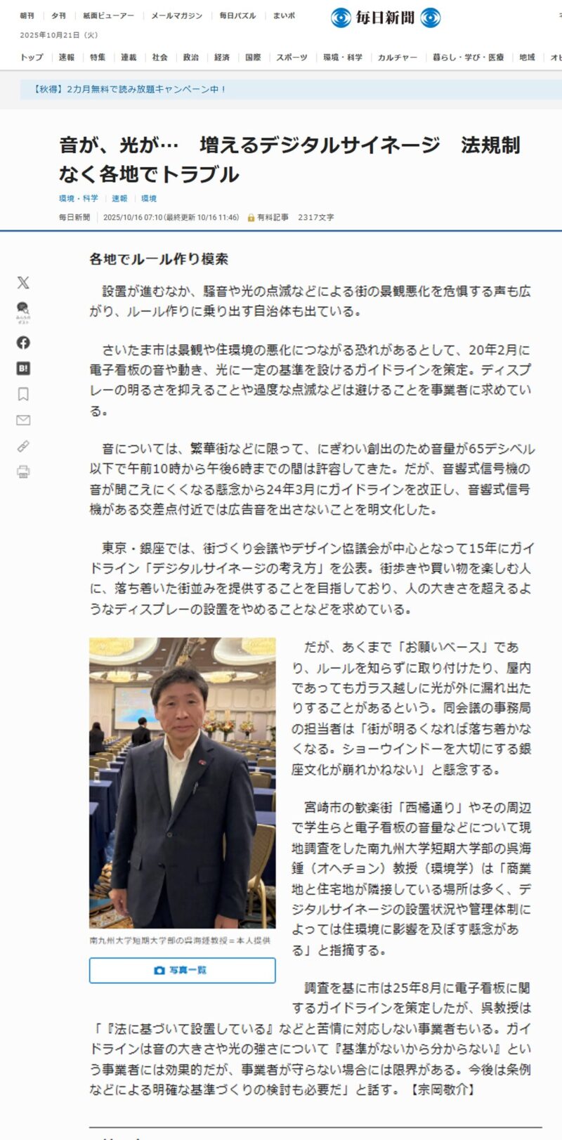 ・ 記事タイトル:「絶えない音 まぶしい光 トラブル増―電子看板 法整備後手―」