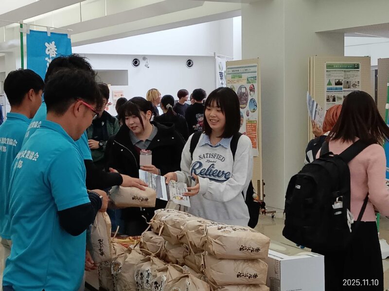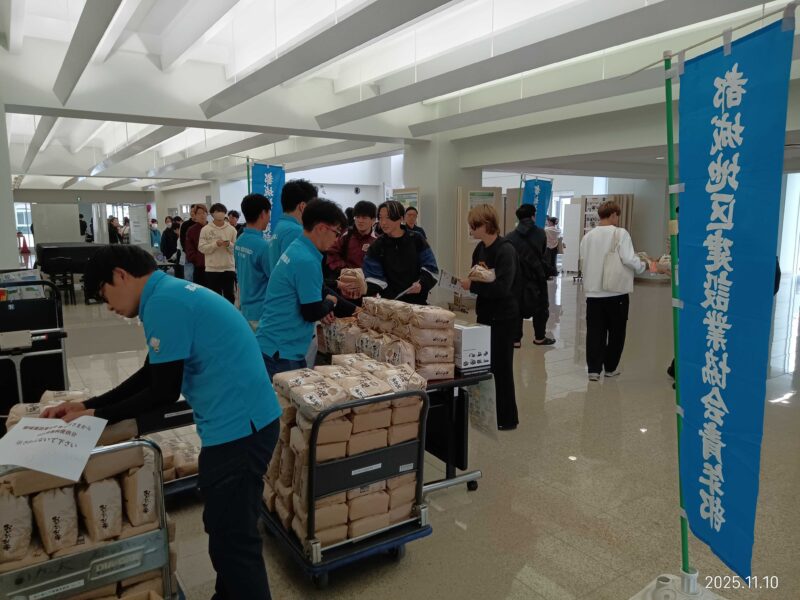 キャンパス内の配付場所には、配付開始前から新米を心待ちにした学生が長蛇の列を作っており、大盛況でした。受け取った学生たちの顔には自然と笑顔が広がり、「お米の値上げが続く中でとても助かる」「スーパーで買うのを諦めてたので、本当にありがたい」などの声が次々と寄せられました。