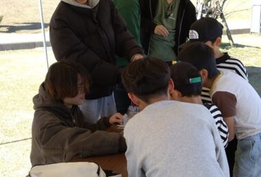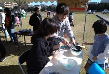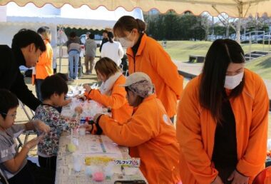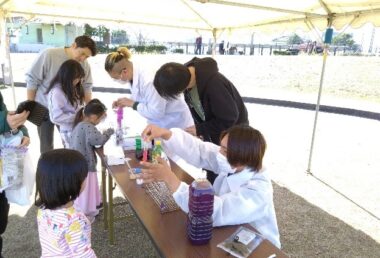 12月7日(日)、宮崎西地区交流センターで開催された「健康ふくしまつり」(中央西まちづくり推進委員会主催)に、本学食品開発科学科の学生たちが参加し、「わんぱく広場」と題して子どもたちに様々な体験を提供しました。