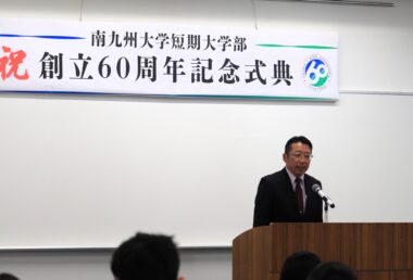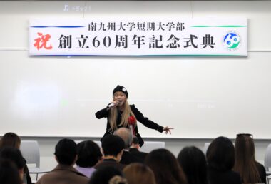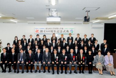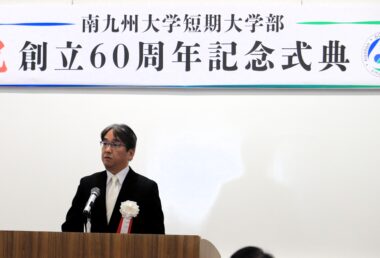 南九州大学短期大学部(学長:中瀬昌之)は11月30日、創立60周年を記念した式典を宮崎キャンパスで開催しました。当日は在学生や教職員のほか、卒業生やかつて教鞭をとっていた教員らが一堂に会し、式典のコンセプトに掲げた「つながる想い」を感じながら、節目の年をともに祝いました。