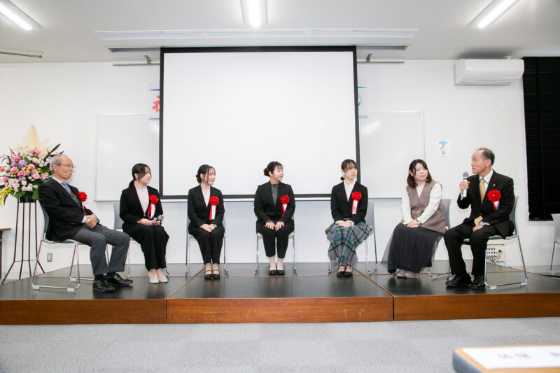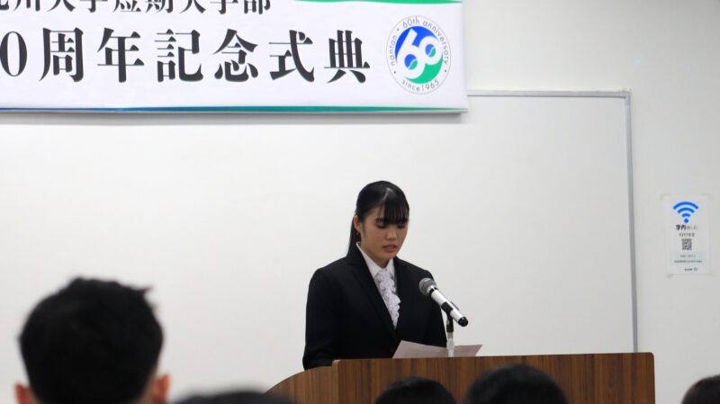 創立六十周年を迎え、これまで本学を支えてきた教職員、地域の皆さま、そして先輩方への深い感謝の思いを胸に、この学び舎で成長できる喜びを新たにしています。六十年の歴史は、一人ひとりの想いが重なり紡がれてきたものであり、私たちも歴史を未来へと繋いでいく存在です。ここで得た学びや出会い、想いを心に刻み、卒業後も社会や次の世代へ受け継いでいく決意をもって、これからも歩み続けていきます。