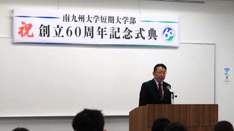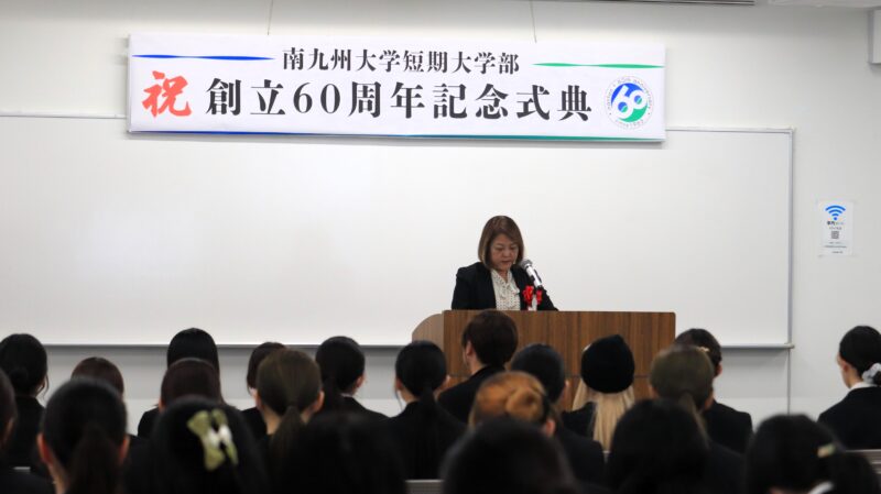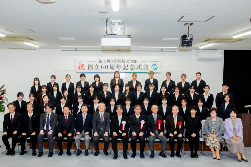 南九州大学短期大学部(学長:中瀬昌之)は11月30日、創立60周年を記念した式典を宮崎キャンパスで開催しました。当日は在学生や教職員のほか、卒業生やかつて教鞭をとっていた教員らが一堂に会し、式典のコンセプトに掲げた「つながる想い」を感じながら、節目の年をともに祝いました。