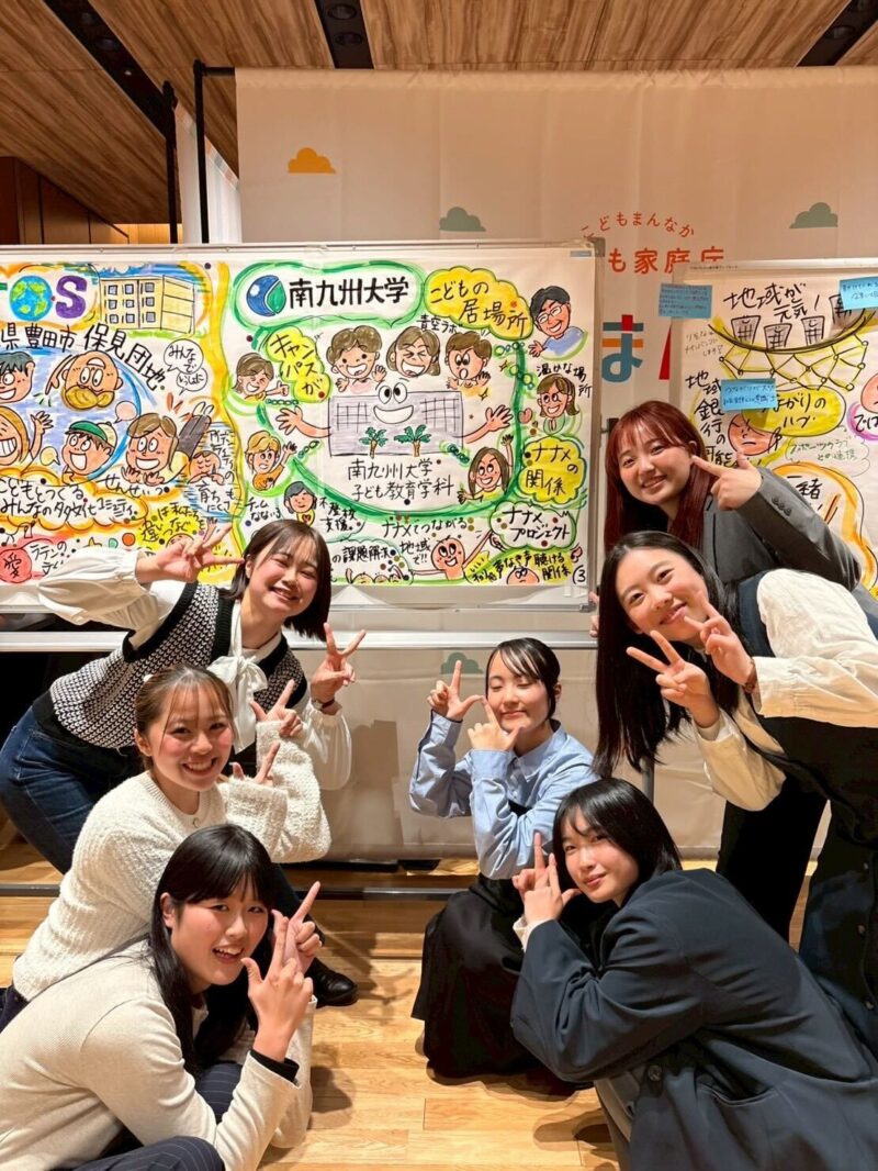 (動画の13:23あたりから南九州大学子ども教育学科の発表が始まります。)