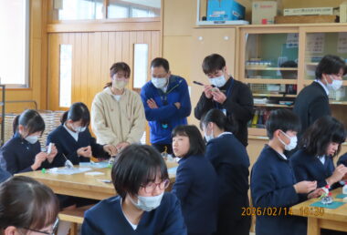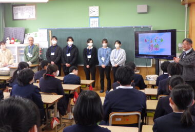 2月14日(土)、子ども教育学科・山之内幹教授と同学科の学生が霧島市立上小川小学校6年生34人とともに卒業記念のポケットオルゴールを一人2つずつ制作しました。