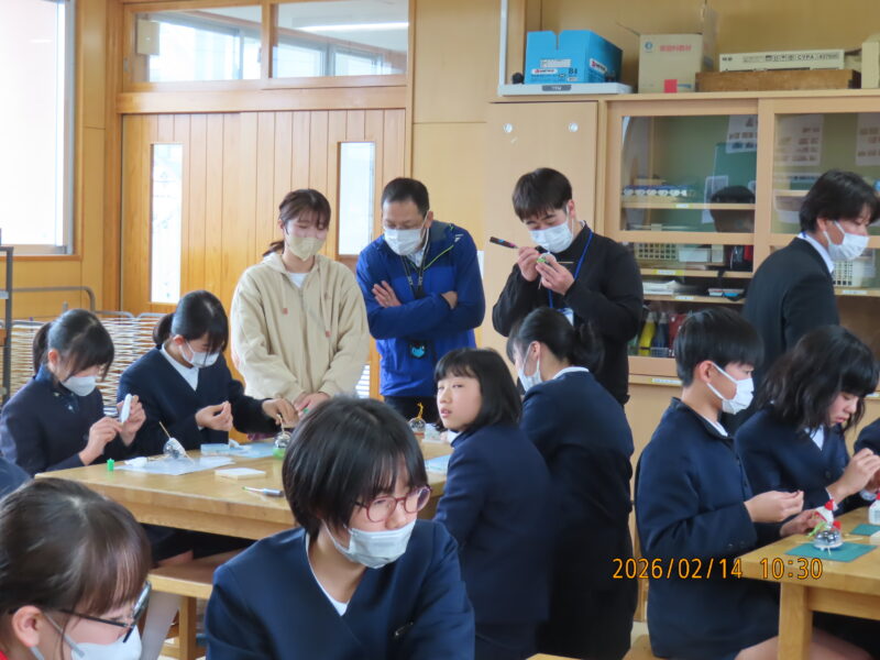 2月14日(土)、子ども教育学科・山之内幹教授と同学科の学生が霧島市立上小川小学校6年生34人とともに卒業記念のポケットオルゴールを一人2つずつ制作しました。