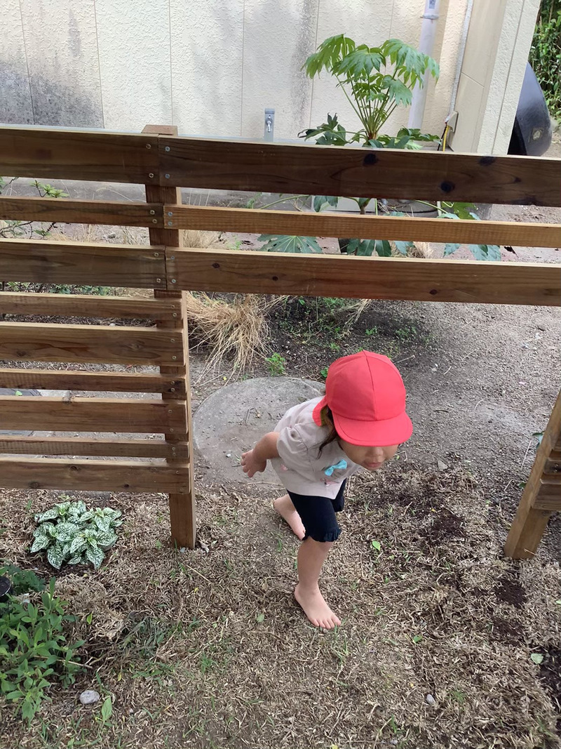 北側のバックヤードの目隠しのフェンスは、子どもがちょっと隠れたり、行ったり来たりできるスペースをとりました。